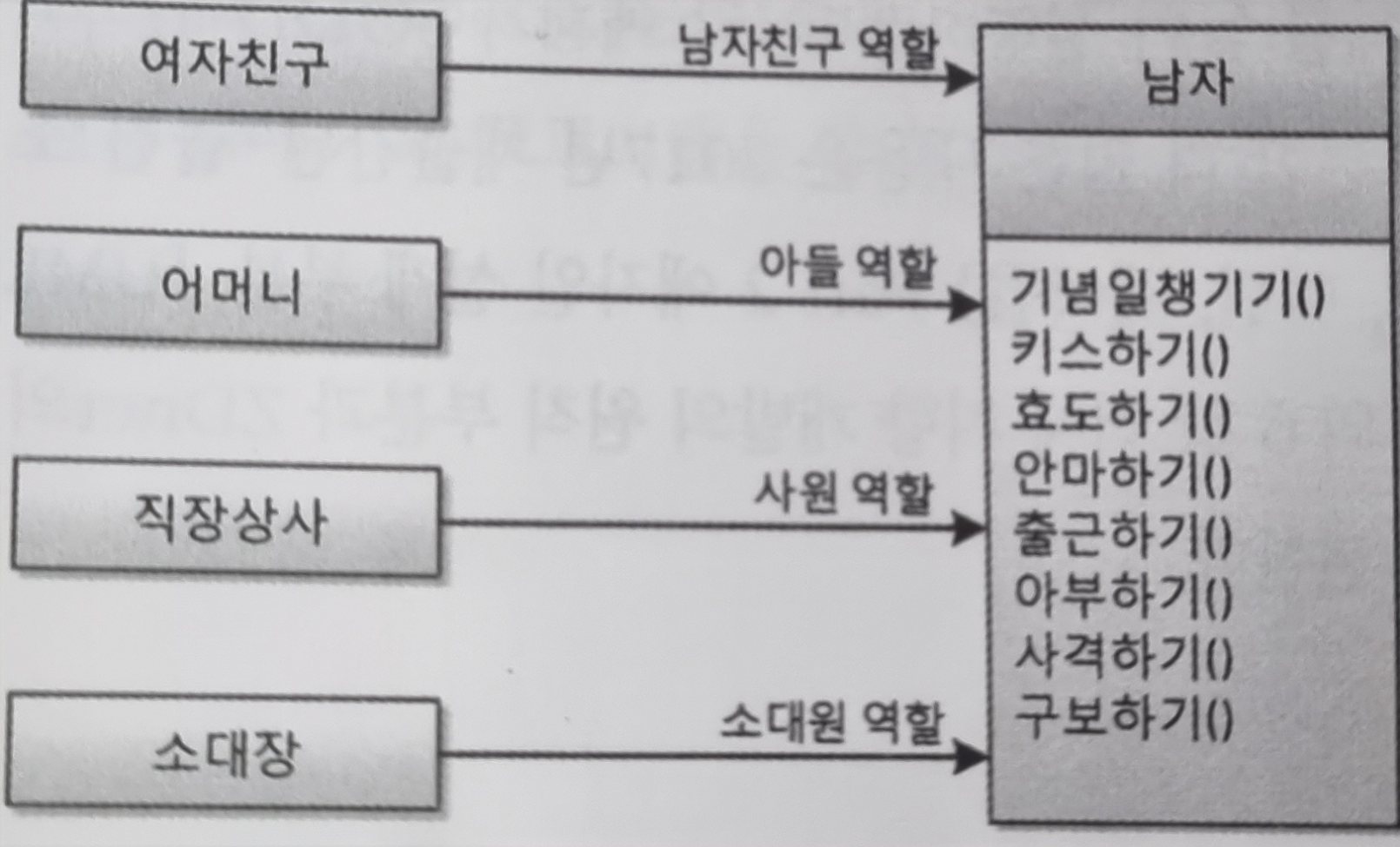 먼저것은 소대장 클래스가 원하는 기능의 변경이 있을때 남자 클래스를 변경해야 하고 이는 여자친구, 어머니, 직장상사 클래스가 모두 영향을 받을 수 있게되는 결합도가 높은 상황이지만 리팩토링하여 클래스를 쪼갠 것은 그렇지 않다.